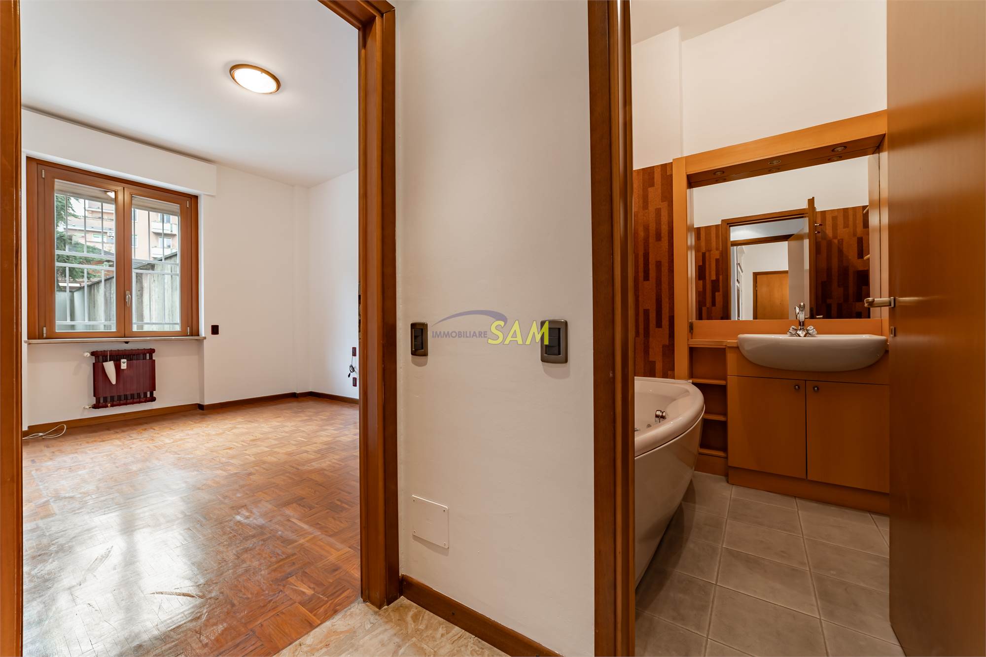 L’appartamento, non arredato, si trova in stabile signorile con ascensore ed è composto da ingresso, cucina abitabile con balcone, soggiorno con terrazzo, camera, due bagni di cui uno completo di vasca idromassaggio e ripostiglio.