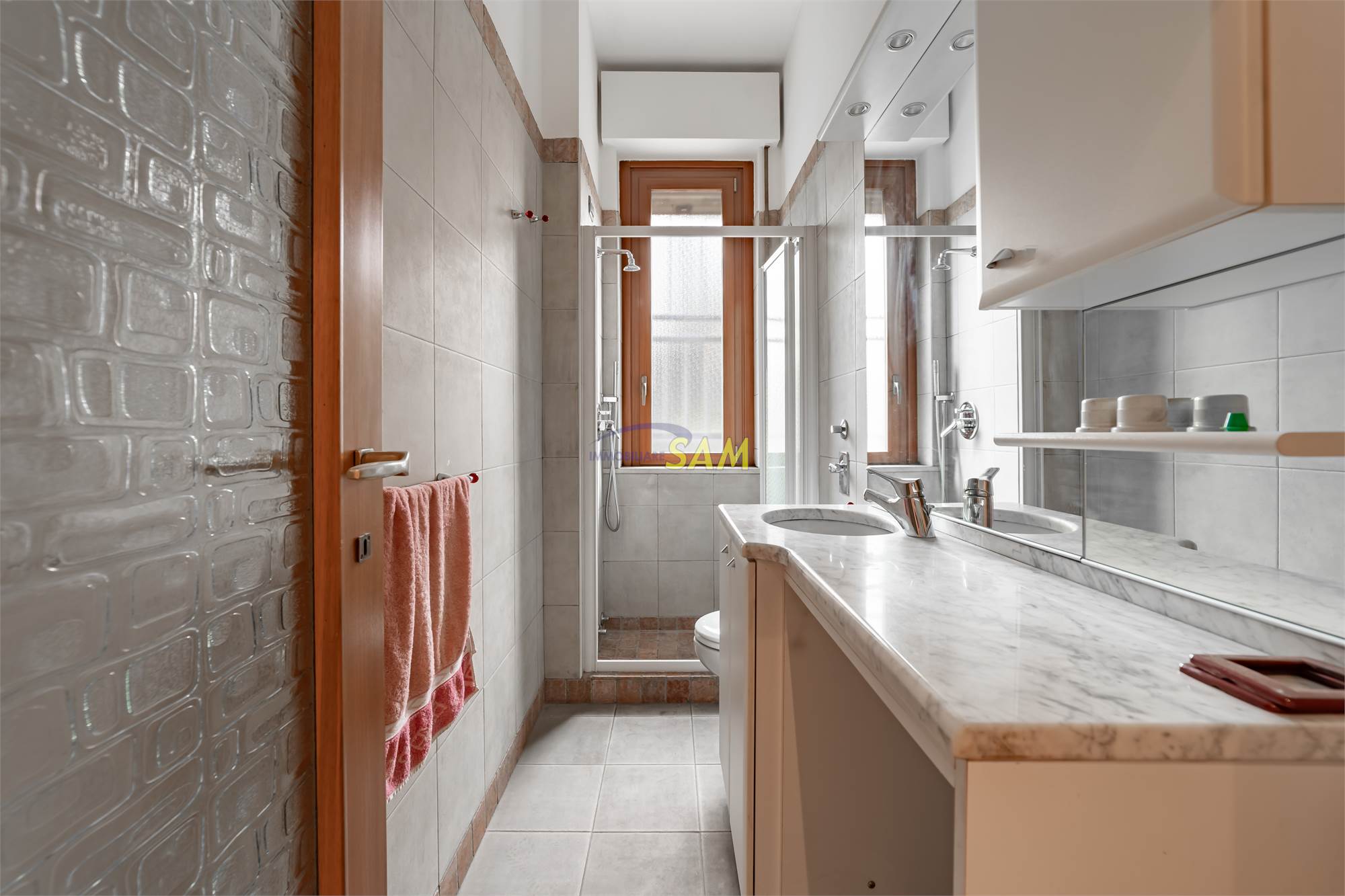 Dotato di aria condizionata centralizzata e infissi di qualità in legno, offre spazi confortevoli e luminosi oltre ampio terrazzo.