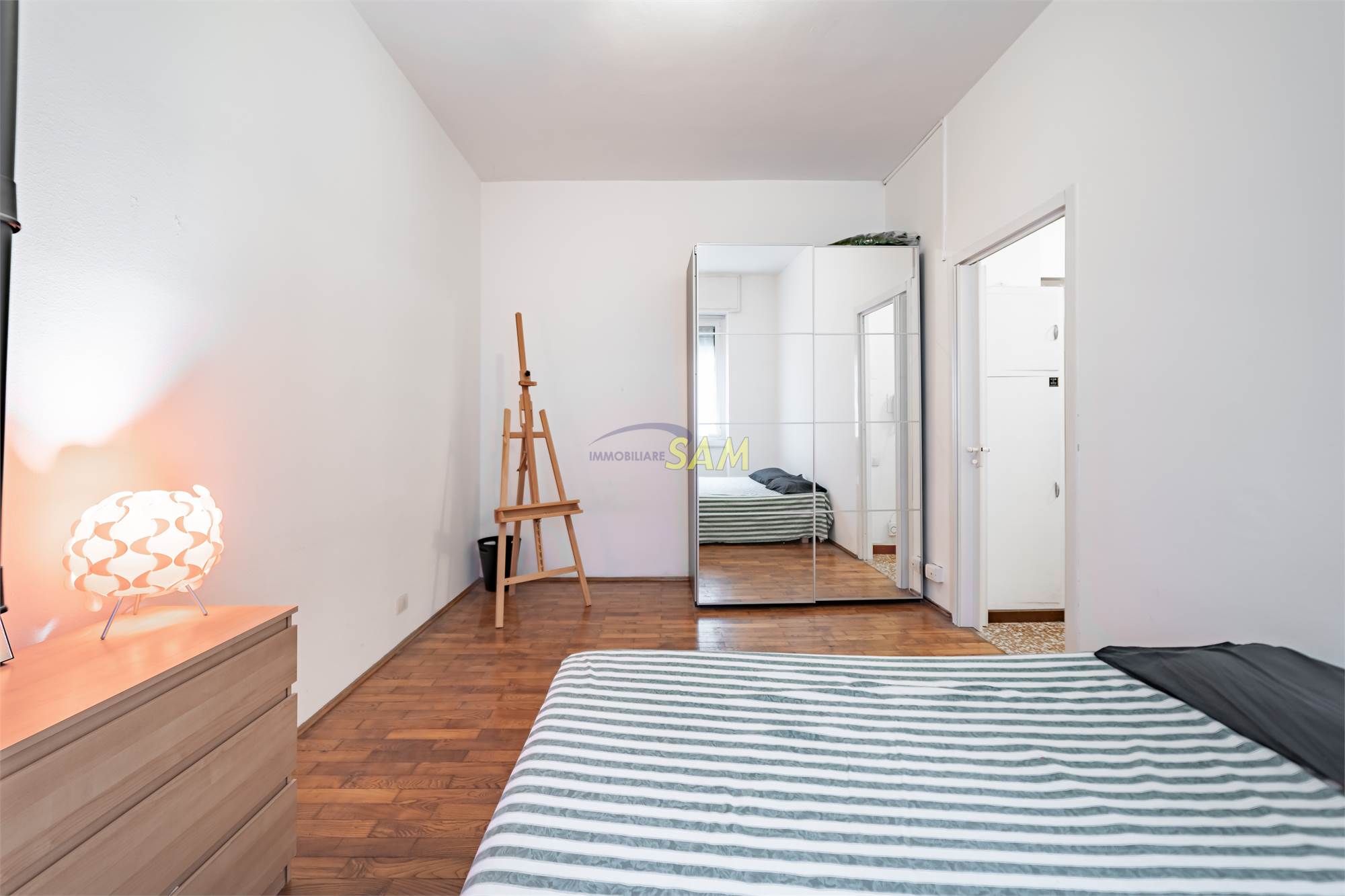 L’appartamento si trova in uno stabile civile con servizio di portineria ed è composto da ingresso, soggiorno con zona pranzo, cucinino separato, camera matrimoniale e bagno finestrato. Sono presenti anche un balcone e un solaio di pertinenza. Il complesso dispone di ampi cortili interni con spazio dedicato al rimessaggio bici.
